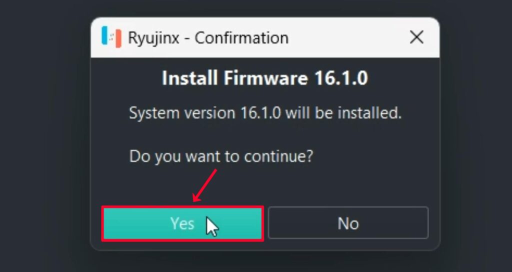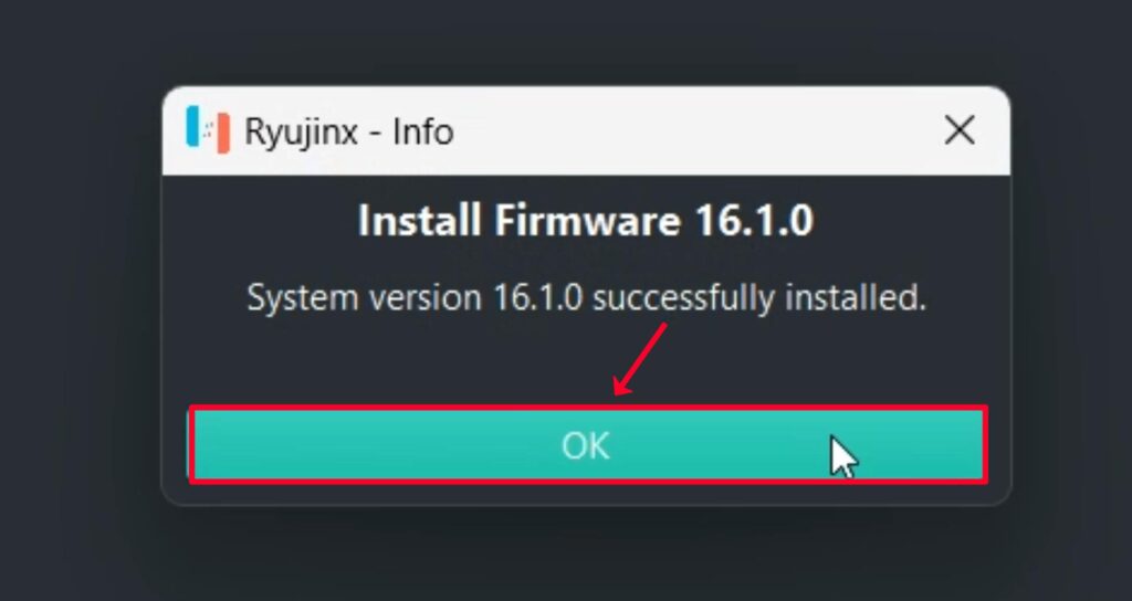 13. After successfully installing the latest Firmware on the Ryujinx Emulator, click “OK.”