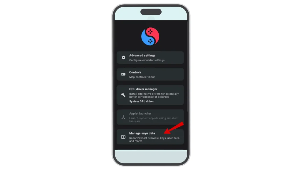- Step 4: In settings, you choose the option Manage Suyu Data and open it.